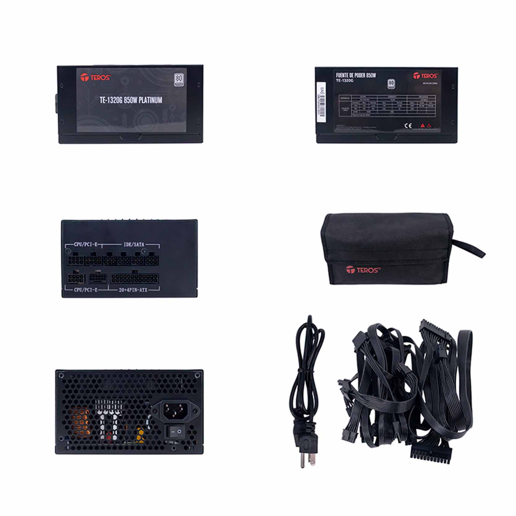 <table style="height: 666px; width: 54.0264%;" border="1" width="369" cellspacing="1" cellpadding="1"> <tbody> <tr> <td style="width: 33.2845%;" rowspan="1"><span style="font-size: 8pt;">MARCA</span></td> <td style="width: 66.7155%;" colspan="2" height="21"><span style="font-size: 8pt;">TEROS</span></td> </tr> <tr></tr> <tr> <td style="width: 33.2845%;" rowspan="1"><span style="font-size: 8pt;">MODELO</span></td> <td style="width: 66.7155%;" colspan="2" height="21"><span style="font-size: 8pt;">TE-1320G</span></td> </tr> <tr></tr> <tr> <td style="width: 33.2845%;" rowspan="1"><span style="font-size: 8pt;">NUMERO DE PARTE</span></td> <td style="width: 66.7155%;" colspan="2" height="21"><span style="font-size: 8pt;">TE-1320G</span></td> </tr> <tr></tr> <tr> <td style="width: 33.2845%;" rowspan="3"><span style="font-size: 8pt;">FACTOR DE FORMA</span></td> <td style="width: 34.6041%;" rowspan="1" height="21"><span style="font-size: 8pt;">FORMATO</span></td> <td style="width: 32.1114%;" colspan="1" height="21"><span style="font-size: 8pt;">ATX</span></td> </tr> <tr> <td style="width: 34.6041%;" rowspan="1" height="21"><span style="font-size: 8pt;">MODULAR</span></td> <td style="width: 32.1114%;" colspan="1" height="21"><span style="font-size: 8pt;">MODULAR FULL</span></td> </tr> <tr> <td style="width: 34.6041%;" rowspan="1" height="21"><span style="font-size: 8pt;">DIMENSIONES</span></td> <td style="width: 32.1114%;" colspan="1" height="21"><span style="font-size: 8pt;">15.00 x 14.00 x 8.60 CM</span></td> </tr> <tr></tr> <tr> <td style="width: 33.2845%;" rowspan="2"><span style="font-size: 8pt;">POTENCIA (WATTS)</span></td> <td style="width: 34.6041%;" rowspan="1" height="21"><span style="font-size: 8pt;">POTENCIA</span></td> <td style="width: 32.1114%;" colspan="1" height="21"><span style="font-size: 8pt;">850W</span></td> </tr> <tr> <td style="width: 34.6041%;" rowspan="1" height="21"><span style="font-size: 8pt;">EFICIENCIA</span></td> <td style="width: 32.1114%;" colspan="1" height="21"><span style="font-size: 8pt;">80 PLUS TITANIUM</span></td> </tr> <tr></tr> <tr> <td style="width: 33.2845%;" rowspan="4"><span style="font-size: 8pt;">VOLTAJE DE ENTRADA</span></td> <td style="width: 34.6041%;" rowspan="1" height="21"><span style="font-size: 8pt;">VOLTAJE DE ENTRADA</span></td> <td style="width: 32.1114%;" colspan="1" height="21"><span style="font-size: 8pt;">100 - 240 VAC</span></td> </tr> <tr> <td style="width: 34.6041%;" rowspan="1" height="21"><span style="font-size: 8pt;">FRECUENCIA</span></td> <td style="width: 32.1114%;" colspan="1" height="21"><span style="font-size: 8pt;">50Hz / 60Hz</span></td> </tr> <tr> <td style="width: 34.6041%;" rowspan="1" height="21"><span style="font-size: 8pt;">CORRIENTE DE ENTRADA</span></td> <td style="width: 32.1114%;" colspan="1" height="21"><span style="font-size: 8pt;">15-8A</span></td> </tr> <tr> <td style="width: 34.6041%;" rowspan="1" height="21"><span style="font-size: 8pt;">PFC</span></td> <td style="width: 32.1114%;" colspan="1" height="21"><span style="font-size: 8pt;">APFC 90% Plus</span></td> </tr> <tr></tr> <tr> <td style="width: 33.2845%;" rowspan="5"><span style="font-size: 8pt;">VOLTAJE DE SALIDA</span></td> <td style="width: 34.6041%;" rowspan="1" height="21"><span style="font-size: 8pt;">+3.3V</span></td> <td style="width: 32.1114%;" colspan="1" height="21"><span style="font-size: 8pt;">NARANJA: 15A</span></td> </tr> <tr> <td style="width: 34.6041%;" rowspan="1" height="21"><span style="font-size: 8pt;">+5V</span></td> <td style="width: 32.1114%;" colspan="1" height="21"><span style="font-size: 8pt;">ROJO: 15A</span></td> </tr> <tr> <td style="width: 34.6041%;" rowspan="1" height="21"><span style="font-size: 8pt;">+12V</span></td> <td style="width: 32.1114%;" colspan="1" height="21"><span style="font-size: 8pt;">AMARILLO: 70A</span></td> </tr> <tr> <td style="width: 34.6041%;" rowspan="1" height="21"><span style="font-size: 8pt;">+5VSB</span></td> <td style="width: 32.1114%;" colspan="1" height="21"><span style="font-size: 8pt;">MORADO: 3A</span></td> </tr> <tr> <td style="width: 34.6041%;" rowspan="1" height="21"><span style="font-size: 8pt;">-12V</span></td> <td style="width: 32.1114%;" colspan="1" height="21"><span style="font-size: 8pt;">AZUL: 0.5A</span></td> </tr> <tr></tr> <tr> <td style="width: 33.2845%;" rowspan="1"><span style="font-size: 8pt;">CONECTORES DE FUENTE</span></td> <td style="width: 66.7155%;" colspan="2" rowspan="1" height="21"><span style="font-size: 8pt;">20+4PIN(600MM)</span><br><span style="font-size: 8pt;">1*P8+(4+4)PIN(CPU)(650MM)*2</span><br><span style="font-size: 8pt;">1*P12+4 PCI5.1(CPU)(600MM)</span><br><span style="font-size: 8pt;">2*6+2P(PCI-E)+6+2P(PCI-E)*2(500MM+150MM)*2</span><br><span style="font-size: 8pt;">1*MOLEX(500MM)+SATA(150MM)+SATA(150MM)*2</span></td> </tr> <tr></tr> <tr> <td style="width: 33.2845%;" rowspan="2"><span style="font-size: 8pt;">VENTILADOR INTERNO</span></td> <td style="width: 34.6041%;" rowspan="1" height="21"><span style="font-size: 8pt;">FAN INTERNO</span></td> <td style="width: 32.1114%;" colspan="1" height="21"><span style="font-size: 8pt;">SI</span></td> </tr> <tr> <td style="width: 34.6041%;" rowspan="1" height="21"><span style="font-size: 8pt;">TAMAÑO DEL FAN</span></td> <td style="width: 32.1114%;" colspan="1" height="21"><span style="font-size: 8pt;">12 CM</span></td> </tr> <tr></tr> <tr> <td style="width: 33.2845%;" rowspan="1"><span style="font-size: 8pt;">CONTENIDO</span></td> <td style="width: 34.6041%;" rowspan="1" height="21"><span style="font-size: 8pt;">CABLE PODER</span></td> <td style="width: 32.1114%;" colspan="1" height="21"><span style="font-size: 8pt;">1</span></td> </tr> <tr></tr> <tr> <td style="width: 33.2845%;" rowspan="1"><span style="font-size: 8pt;">PRESENTACION</span></td> <td style="width: 66.7155%;" colspan="2" height="21"><span style="font-size: 8pt;">CAJA</span></td> </tr> </tbody> </table>