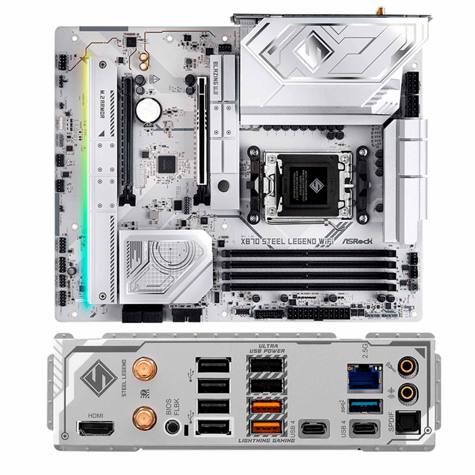 <table style="height: 2129px; width: 53.2943%;" border="1" width="364" cellspacing="1" cellpadding="1"> <tbody> <tr> <td style="width: 27.566%;" rowspan="1"><span style="font-size: 8pt;">MARCA</span></td> <td style="width: 72.2874%;" colspan="3" height="21"><span style="font-size: 8pt;">ASROCK</span></td> </tr> <tr></tr> <tr> <td style="width: 27.566%;" rowspan="1"><span style="font-size: 8pt;">MODELO</span></td> <td style="width: 72.2874%;" colspan="3" height="21"><span style="font-size: 8pt;">X870 Steel Legend WiFii</span></td> </tr> <tr></tr> <tr> <td style="width: 27.566%;" rowspan="1"><span style="font-size: 8pt;">CHIPSET</span></td> <td style="width: 72.2874%;" colspan="3" height="21"><span style="font-size: 8pt;">AMD X870</span></td> </tr> <tr></tr> <tr> <td style="width: 27.566%;" rowspan="1"><span style="font-size: 8pt;">TIPO DE SOCKET</span></td> <td style="width: 72.2874%;" colspan="3" height="21"><span style="font-size: 8pt;">AM5 AMD</span></td> </tr> <tr></tr> <tr> <td style="width: 27.566%;" rowspan="1"><span style="font-size: 8pt;">PROCESADORES</span></td> <td style="width: 28.2991%;" rowspan="1" height="21"><span style="font-size: 8pt;">AMD COMPATIBLE</span></td> <td style="width: 43.9883%;" colspan="2" height="21"><span style="font-size: 8pt;">Procesador AMD Ryzen 9 SAM5 9XXX</span><br><span style="font-size: 8pt;">Procesador AMD Ryzen 7 SAM5 9XXX</span><br><span style="font-size: 8pt;">Procesador AMD Ryzen 5 SAM5 9XXX</span><br><span style="font-size: 8pt;">Procesador AMD Ryzen 3 SAM5 9XXX</span><br><span style="font-size: 8pt;">Procesador AMD Ryzen 3 SAM5 8XXX</span><br><span style="font-size: 8pt;">Procesador AMD Ryzen 9 SAM5 8XXX</span><br><span style="font-size: 8pt;">Procesador AMD Ryzen 7 SAM5 8XXX</span><br><span style="font-size: 8pt;">Procesador AMD Ryzen 5 SAM5 8XXX</span><br><span style="font-size: 8pt;">Procesador AMD Ryzen 9 SAM5 7XXX</span><br><span style="font-size: 8pt;">Procesador AMD Ryzen 7 SAM5 7XXX</span><br><span style="font-size: 8pt;">Procesador AMD Ryzen 5 SAM5 7XXX</span></td> </tr> <tr></tr> <tr> <td style="width: 27.566%;" rowspan="5"><span style="font-size: 8pt;">MEMORIAS RAM</span></td> <td style="width: 28.2991%;" rowspan="1" height="21"><span style="font-size: 8pt;">COMPATIBLES</span></td> <td style="width: 43.9883%;" colspan="2" height="21"><span style="font-size: 8pt;">Memoria RAM DDR5 8200 MHz PC5-65600</span><br><span style="font-size: 8pt;">Memoria RAM DDR5 7600 MHz PC5-60800</span><br><span style="font-size: 8pt;">Memoria RAM DDR5 7200 MHz PC5-57600</span><br><span style="font-size: 8pt;">Memoria RAM DDR5 6800 MHz PC5-54400</span><br><span style="font-size: 8pt;">Memoria RAM DDR5 6400 MHz PC5-51200</span><br><span style="font-size: 8pt;">Memoria RAM DDR5 6000 MHz PC5-48000</span><br><span style="font-size: 8pt;">Memoria RAM DDR5 5600 MHz PC5-44800</span><br><span style="font-size: 8pt;">Memoria RAM DDR5 5200 MHz PC5-41600</span><br><span style="font-size: 8pt;">Memoria RAM DDR5 4800 MHz PC5-38400</span></td> </tr> <tr> <td style="width: 28.2991%;" rowspan="1" height="21"><span style="font-size: 8pt;">NUMERO DE SOCKETS DIMM</span></td> <td style="width: 43.9883%;" colspan="2" height="21"><span style="font-size: 8pt;">4</span></td> </tr> <tr> <td style="width: 28.2991%;" rowspan="1" height="21"><span style="font-size: 8pt;">EXPANSION MAXIMA EN GB</span></td> <td style="width: 43.9883%;" colspan="2" height="21"><span style="font-size: 8pt;">196</span></td> </tr> <tr> <td style="width: 28.2991%;" rowspan="1" height="21"><span style="font-size: 8pt;">TECNOLOGIA</span></td> <td style="width: 43.9883%;" colspan="2" height="21"><span style="font-size: 8pt;">AMD EXPO</span><br><span style="font-size: 8pt;">Intel XMP</span><br><span style="font-size: 8pt;">Dual Channel</span></td> </tr> <tr> <td style="width: 28.2991%;" rowspan="1" height="21"><span style="font-size: 8pt;">TIPO DE RAM</span></td> <td style="width: 43.9883%;" colspan="2" height="21"><span style="font-size: 8pt;">DDR5</span></td> </tr> <tr></tr> <tr> <td style="width: 27.566%;" rowspan="1"><span style="font-size: 8pt;">VIDEO</span></td> <td style="width: 72.2874%;" colspan="3" height="21"><span style="font-size: 8pt;">Revisar caracteristicas del Procesador</span></td> </tr> <tr></tr> <tr> <td style="width: 27.566%;" rowspan="3"><span style="font-size: 8pt;">SONIDO</span></td> <td style="width: 28.2991%;" rowspan="1" height="21"><span style="font-size: 8pt;">TECNOLOGIA</span></td> <td style="width: 43.9883%;" colspan="2" height="21"><span style="font-size: 8pt;">HD con protección de contenido</span></td> </tr> <tr> <td style="width: 28.2991%;" rowspan="1" height="21"><span style="font-size: 8pt;">CHIPSET</span></td> <td style="width: 43.9883%;" colspan="2" height="21"><span style="font-size: 8pt;">Realtek ALC4082 Codec</span></td> </tr> <tr> <td style="width: 28.2991%;" rowspan="1" height="21"><span style="font-size: 8pt;">CANALES</span></td> <td style="width: 43.9883%;" colspan="2" height="21"><span style="font-size: 8pt;">7.1</span></td> </tr> <tr></tr> <tr> <td style="width: 27.566%;" rowspan="6"><span style="font-size: 8pt;">CONECTIVIDAD</span></td> <td style="width: 28.2991%;" rowspan="2" height="21"><span style="font-size: 8pt;">ETHERNET</span></td> <td style="width: 29.4721%;" rowspan="1" height="21"><span style="font-size: 8pt;">CHIPSET</span></td> <td style="width: 14.5161%;" colspan="1" height="21"><span style="font-size: 8pt;">Realtek RTL8125BG</span></td> </tr> <tr> <td style="width: 29.4721%;" rowspan="1" height="21"><span style="font-size: 8pt;">VELOCIDAD</span></td> <td style="width: 14.5161%;" colspan="1" height="21"><span style="font-size: 8pt;">10 Mbps</span><br><span style="font-size: 8pt;">100 Mbps</span><br><span style="font-size: 8pt;">1000 Mbps</span><br><span style="font-size: 8pt;">2500 Mbps</span></td> </tr> <tr> <td style="width: 28.2991%;" rowspan="3" height="21"><span style="font-size: 8pt;">WIRELESS</span></td> <td style="width: 29.4721%;" rowspan=