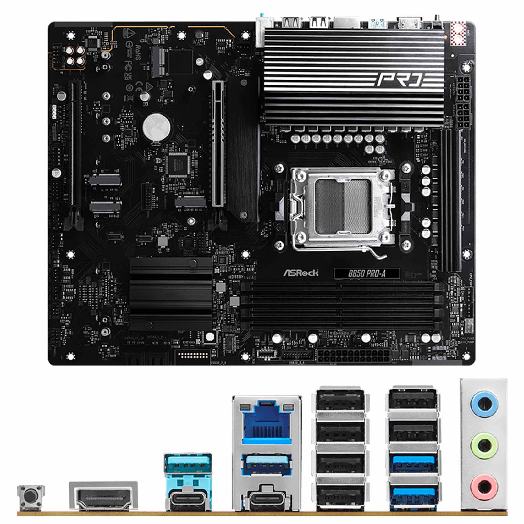 <table style="height: 1911px; width: 54.3192%;" border="1" width="371" cellspacing="1" cellpadding="1"> <tbody> <tr> <td style="width: 27.2727%;" rowspan="1"><span style="font-size: 8pt;">MARCA</span></td> <td style="width: 72.5806%;" colspan="3" height="21"><span style="font-size: 8pt;">ASROCK</span></td> </tr> <tr></tr> <tr> <td style="width: 27.2727%;" rowspan="1"><span style="font-size: 8pt;">MODELO</span></td> <td style="width: 72.5806%;" colspan="3" height="21"><span style="font-size: 8pt;">B850 Pro-A</span></td> </tr> <tr></tr> <tr> <td style="width: 27.2727%;" rowspan="1"><span style="font-size: 8pt;">CHIPSET</span></td> <td style="width: 72.5806%;" colspan="3" height="21"><span style="font-size: 8pt;">AMD B850</span></td> </tr> <tr></tr> <tr> <td style="width: 27.2727%;" rowspan="1"><span style="font-size: 8pt;">TIPO DE SOCKET</span></td> <td style="width: 72.5806%;" colspan="3" height="21"><span style="font-size: 8pt;">AM5 AMD</span></td> </tr> <tr></tr> <tr> <td style="width: 27.2727%;" rowspan="1"><span style="font-size: 8pt;">PROCESADORES</span></td> <td style="width: 28.0059%;" rowspan="1" height="21"><span style="font-size: 8pt;">AMD COMPATIBLE</span></td> <td style="width: 44.5748%;" colspan="2" height="21"><span style="font-size: 8pt;">Procesador AMD Ryzen 9 SAM5 9XXX</span><br><span style="font-size: 8pt;">Procesador AMD Ryzen 7 SAM5 9XXX</span><br><span style="font-size: 8pt;">Procesador AMD Ryzen 5 SAM5 9XXX</span><br><span style="font-size: 8pt;">Procesador AMD Ryzen 3 SAM5 9XXX</span><br><span style="font-size: 8pt;">Procesador AMD Ryzen 3 SAM5 8XXX</span><br><span style="font-size: 8pt;">Procesador AMD Ryzen 9 SAM5 8XXX</span><br><span style="font-size: 8pt;">Procesador AMD Ryzen 7 SAM5 8XXX</span><br><span style="font-size: 8pt;">Procesador AMD Ryzen 5 SAM5 8XXX</span><br><span style="font-size: 8pt;">Procesador AMD Ryzen 9 SAM5 7XXX</span><br><span style="font-size: 8pt;">Procesador AMD Ryzen 7 SAM5 7XXX</span><br><span style="font-size: 8pt;">Procesador AMD Ryzen 5 SAM5 7XXX</span></td> </tr> <tr></tr> <tr> <td style="width: 27.2727%;" rowspan="5"><span style="font-size: 8pt;">MEMORIAS RAM</span></td> <td style="width: 28.0059%;" rowspan="1" height="21"><span style="font-size: 8pt;">COMPATIBLES</span></td> <td style="width: 44.5748%;" colspan="2" height="21"><span style="font-size: 8pt;">Memoria RAM DDR5 8200 MHz PC5-65600</span><br><span style="font-size: 8pt;">Memoria RAM DDR5 7600 MHz PC5-60800</span><br><span style="font-size: 8pt;">Memoria RAM DDR5 7200 MHz PC5-57600</span><br><span style="font-size: 8pt;">Memoria RAM DDR5 6800 MHz PC5-54400</span><br><span style="font-size: 8pt;">Memoria RAM DDR5 6400 MHz PC5-51200</span><br><span style="font-size: 8pt;">Memoria RAM DDR5 6000 MHz PC5-48000</span><br><span style="font-size: 8pt;">Memoria RAM DDR5 5600 MHz PC5-44800</span><br><span style="font-size: 8pt;">Memoria RAM DDR5 5200 MHz PC5-41600</span><br><span style="font-size: 8pt;">Memoria RAM DDR5 4800 MHz PC5-38400</span></td> </tr> <tr> <td style="width: 28.0059%;" rowspan="1" height="21"><span style="font-size: 8pt;">NUMERO DE SOCKETS DIMM</span></td> <td style="width: 44.5748%;" colspan="2" height="21"><span style="font-size: 8pt;">4</span></td> </tr> <tr> <td style="width: 28.0059%;" rowspan="1" height="21"><span style="font-size: 8pt;">EXPANSION MAXIMA EN GB</span></td> <td style="width: 44.5748%;" colspan="2" height="21"><span style="font-size: 8pt;">196</span></td> </tr> <tr> <td style="width: 28.0059%;" rowspan="1" height="21"><span style="font-size: 8pt;">TECNOLOGIA</span></td> <td style="width: 44.5748%;" colspan="2" height="21"><span style="font-size: 8pt;">AMD EXPO</span><br><span style="font-size: 8pt;">Intel XMP</span><br><span style="font-size: 8pt;">Dual Channel</span></td> </tr> <tr> <td style="width: 28.0059%;" rowspan="1" height="21"><span style="font-size: 8pt;">TIPO DE RAM</span></td> <td style="width: 44.5748%;" colspan="2" height="21"><span style="font-size: 8pt;">DDR5</span></td> </tr> <tr></tr> <tr> <td style="width: 27.2727%;" rowspan="1"><span style="font-size: 8pt;">VIDEO</span></td> <td style="width: 72.5806%;" colspan="3" height="21"><span style="font-size: 8pt;">Revisar caracteristicas del Procesador</span></td> </tr> <tr></tr> <tr> <td style="width: 27.2727%;" rowspan="3"><span style="font-size: 8pt;">SONIDO</span></td> <td style="width: 28.0059%;" rowspan="1" height="21"><span style="font-size: 8pt;">TECNOLOGIA</span></td> <td style="width: 44.5748%;" colspan="2" height="21"><span style="font-size: 8pt;">High Definition Audio</span></td> </tr> <tr> <td style="width: 28.0059%;" rowspan="1" height="21"><span style="font-size: 8pt;">CHIPSET</span></td> <td style="width: 44.5748%;" colspan="2" height="21"><span style="font-size: 8pt;">Realtek ALC897 Codec</span></td> </tr> <tr> <td style="width: 28.0059%;" rowspan="1" height="21"><span style="font-size: 8pt;">CANALES</span></td> <td style="width: 44.5748%;" colspan="2" height="21"><span style="font-size: 8pt;">7.1</span></td> </tr> <tr></tr> <tr> <td style="width: 27.2727%;" rowspan="2"><span style="font-size: 8pt;">CONECTIVIDAD</span></td> <td style="width: 28.0059%;" rowspan="2" height="21"><span style="font-size: 8pt;">ETHERNET</span></td> <td style="width: 30.2053%;" rowspan="1" height="21"><span style="font-size: 8pt;">CHIPSET</span></td> <td style="width: 14.3695%;" colspan="1" height="21"><span style="font-size: 8pt;">Realtek RTL8125BG</span></td> </tr> <tr> <td style="width: 30.2053%;" rowspan="1" height="21"><span style="font-size: 8pt;">VELOCIDAD</span></td> <td style="width: 14.3695%;" colspan="1" height="21"><span style="font-size: 8pt;">10 Mbps</span><br><span style="font-size: 8pt;">100 Mbps</span><br><span style="font-size: 8pt;">1000 Mbps</span><br><span style="font-size: 8pt;">2500 Mbps</span></td> </tr> <tr></tr> <tr> <td style="width: 27.2727%;" rowspan="3"><span style="font-size: 8pt;">ALMACENAMIENTO SERIAL ATA</span></td> <td style="width: 28.0059%;" rowspan=