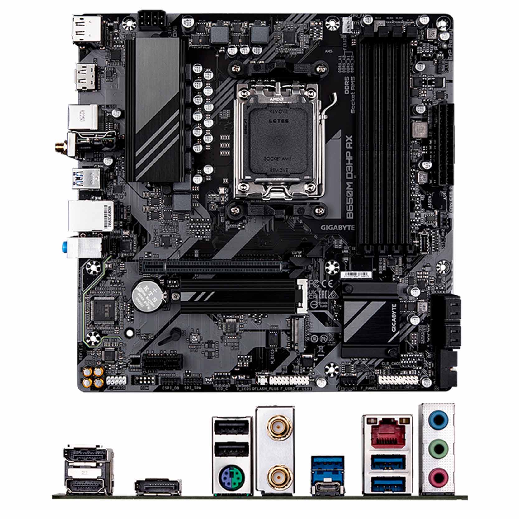 <table style="height: 2011px; width: 54.4656%;" border="1" width="372" cellspacing="1" cellpadding="1"> <tbody> <tr> <td style="width: 25.9531%;" rowspan="1"><span style="font-size: 8pt;">MARCA</span></td> <td style="width: 74.1935%;" colspan="3" height="21"><span style="font-size: 8pt;">GIGABYTE</span></td> </tr> <tr></tr> <tr> <td style="width: 25.9531%;" rowspan="1"><span style="font-size: 8pt;">MODELO</span></td> <td style="width: 74.1935%;" colspan="3" height="21"><span style="font-size: 8pt;">B650M D3HP AX</span></td> </tr> <tr></tr> <tr> <td style="width: 25.9531%;" rowspan="1"><span style="font-size: 8pt;">REVISION</span></td> <td style="width: 74.1935%;" colspan="3" height="21"><span style="font-size: 8pt;">1.0</span></td> </tr> <tr></tr> <tr> <td style="width: 25.9531%;" rowspan="1"><span style="font-size: 8pt;">CHIPSET</span></td> <td style="width: 74.1935%;" colspan="3" height="21"><span style="font-size: 8pt;">AMD B650</span></td> </tr> <tr></tr> <tr> <td style="width: 25.9531%;" rowspan="1"><span style="font-size: 8pt;">TIPO DE SOCKET</span></td> <td style="width: 74.1935%;" colspan="3" height="21"><span style="font-size: 8pt;">AM5 AMD</span></td> </tr> <tr></tr> <tr> <td style="width: 25.9531%;" rowspan="1"><span style="font-size: 8pt;">PROCESADORES</span></td> <td style="width: 26.6862%;" rowspan="1" height="21"><span style="font-size: 8pt;">AMD COMPATIBLE</span></td> <td style="width: 47.5073%;" colspan="2" height="21"><span style="font-size: 8pt;">Procesador AMD Ryzen 9 SAM5 9XXX</span><br><span style="font-size: 8pt;">Procesador AMD Ryzen 7 SAM5 9XXX</span><br><span style="font-size: 8pt;">Procesador AMD Ryzen 5 SAM5 9XXX</span><br><span style="font-size: 8pt;">Procesador AMD Ryzen 3 SAM5 9XXX</span><br><span style="font-size: 8pt;">Procesador AMD Ryzen 3 SAM5 8XXX</span><br><span style="font-size: 8pt;">Procesador AMD Ryzen 9 SAM5 8XXX</span><br><span style="font-size: 8pt;">Procesador AMD Ryzen 7 SAM5 8XXX</span><br><span style="font-size: 8pt;">Procesador AMD Ryzen 5 SAM5 8XXX</span><br><span style="font-size: 8pt;">Procesador AMD Ryzen 9 SAM5 7XXX</span><br><span style="font-size: 8pt;">Procesador AMD Ryzen 7 SAM5 7XXX</span><br><span style="font-size: 8pt;">Procesador AMD Ryzen 5 SAM5 7XXX</span></td> </tr> <tr></tr> <tr> <td style="width: 25.9531%;" rowspan="5"><span style="font-size: 8pt;">MEMORIAS RAM</span></td> <td style="width: 26.6862%;" rowspan="1" height="21"><span style="font-size: 8pt;">COMPATIBLES</span></td> <td style="width: 47.5073%;" colspan="2" height="21"><span style="font-size: 8pt;">Memoria RAM DDR5 8200 MHz PC5-65600</span><br><span style="font-size: 8pt;">Memoria RAM DDR5 7600 MHz PC5-60800</span><br><span style="font-size: 8pt;">Memoria RAM DDR5 7200 MHz PC5-57600</span><br><span style="font-size: 8pt;">Memoria RAM DDR5 6800 MHz PC5-54400</span><br><span style="font-size: 8pt;">Memoria RAM DDR5 6400 MHz PC5-51200</span><br><span style="font-size: 8pt;">Memoria RAM DDR5 6000 MHz PC5-48000</span><br><span style="font-size: 8pt;">Memoria RAM DDR5 5600 MHz PC5-44800</span><br><span style="font-size: 8pt;">Memoria RAM DDR5 5200 MHz PC5-41600</span><br><span style="font-size: 8pt;">Memoria RAM DDR5 4800 MHz PC5-38400</span></td> </tr> <tr> <td style="width: 26.6862%;" rowspan="1" height="21"><span style="font-size: 8pt;">NUMERO DE SOCKETS DIMM</span></td> <td style="width: 47.5073%;" colspan="2" height="21"><span style="font-size: 8pt;">4</span></td> </tr> <tr> <td style="width: 26.6862%;" rowspan="1" height="21"><span style="font-size: 8pt;">EXPANSION MAXIMA EN GB</span></td> <td style="width: 47.5073%;" colspan="2" height="21"><span style="font-size: 8pt;">192</span></td> </tr> <tr> <td style="width: 26.6862%;" rowspan="1" height="21"><span style="font-size: 8pt;">TECNOLOGIA</span></td> <td style="width: 47.5073%;" colspan="2" height="21"><span style="font-size: 8pt;">AMD EXPO</span><br><span style="font-size: 8pt;">Intel XMP</span><br><span style="font-size: 8pt;">Dual Channel</span></td> </tr> <tr> <td style="width: 26.6862%;" rowspan="1" height="21"><span style="font-size: 8pt;">TIPO DE RAM</span></td> <td style="width: 47.5073%;" colspan="2" height="21"><span style="font-size: 8pt;">DDR5</span></td> </tr> <tr></tr> <tr> <td style="width: 25.9531%;" rowspan="1"><span style="font-size: 8pt;">VIDEO</span></td> <td style="width: 74.1935%;" colspan="3" height="21"><span style="font-size: 8pt;">Revisar caracteristicas del Procesador</span></td> </tr> <tr></tr> <tr> <td style="width: 25.9531%;" rowspan="3"><span style="font-size: 8pt;">SONIDO</span></td> <td style="width: 26.6862%;" rowspan="1" height="21"><span style="font-size: 8pt;">TECNOLOGIA</span></td> <td style="width: 47.5073%;" colspan="2" height="21"><span style="font-size: 8pt;">High Definition (HD)</span></td> </tr> <tr> <td style="width: 26.6862%;" rowspan="1" height="21"><span style="font-size: 8pt;">CHIPSET</span></td> <td style="width: 47.5073%;" colspan="2" height="21"><span style="font-size: 8pt;">Realtek Audio Codec</span></td> </tr> <tr> <td style="width: 26.6862%;" rowspan="1" height="21"><span style="font-size: 8pt;">CANALES</span></td> <td style="width: 47.5073%;" colspan="2" height="21"><span style="font-size: 8pt;">7.1</span></td> </tr> <tr></tr> <tr> <td style="width: 25.9531%;" rowspan="6"><span style="font-size: 8pt;">CONECTIVIDAD</span></td> <td style="width: 26.6862%;" rowspan="2" height="21"><span style="font-size: 8pt;">ETHERNET</span></td> <td style="width: 27.8592%;" rowspan="1" height="21"><span style="font-size: 8pt;">CHIPSET</span></td> <td style="width: 19.6481%;" colspan="1" height="21"><span style="font-size: 8pt;">Realtek 2.5GbE</span></td> </tr> <tr> <td style="width: 27.8592%;" rowspan="1" height="21"><span style="font-size: 8pt;">VELOCIDAD</span></td> <td style="width: 19.6481%;" colspan="1" height="21"><span style="font-size: 8pt;">100 Mbps</span><br><span style="font-size: 8pt;">1000 Mbps</span><br><span style="font-size: 8pt;">2500 Mbps</span></td> </t