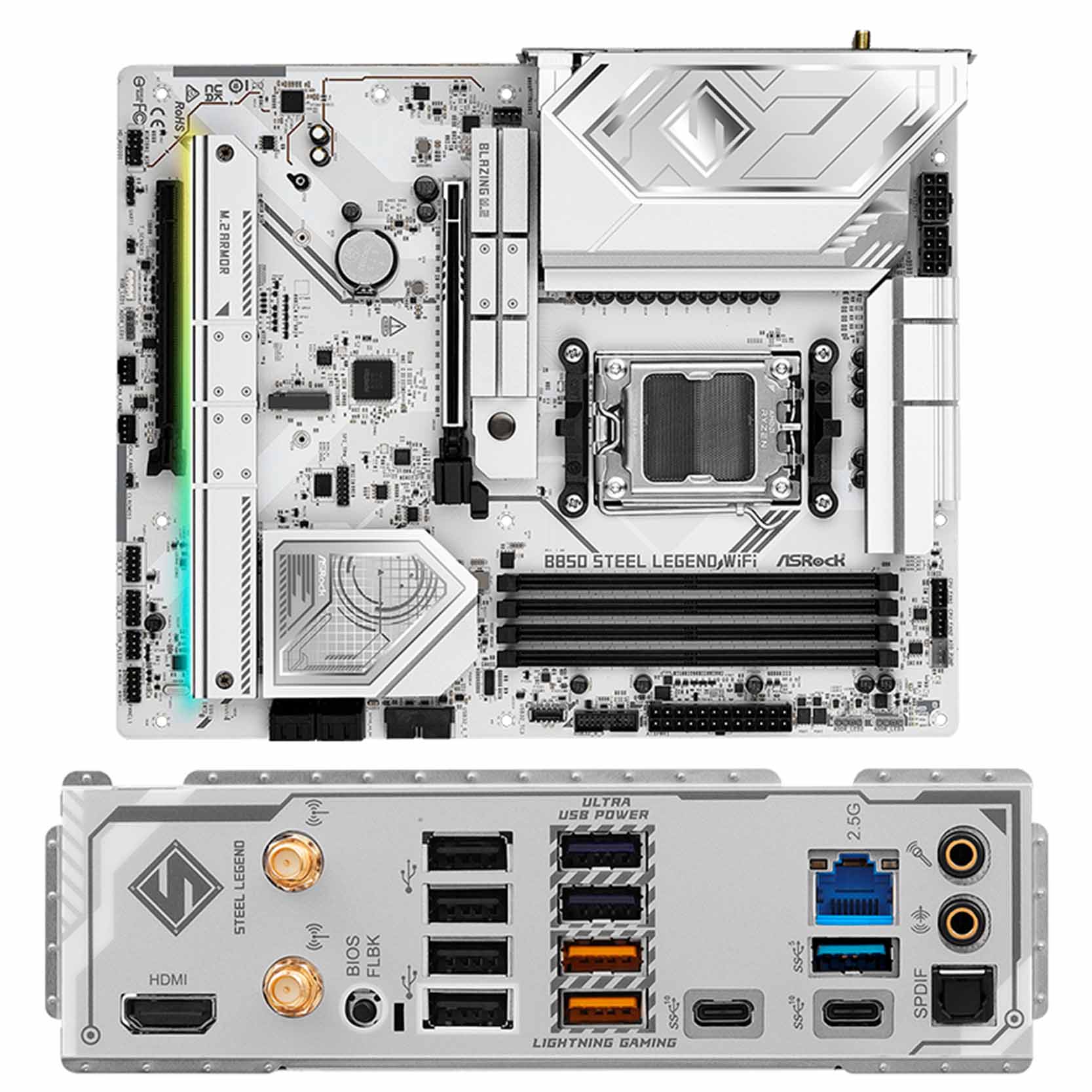 <table style="height: 2213px; width: 54.7584%;" border="1" width="374" cellspacing="1" cellpadding="1"> <tbody> <tr> <td style="width: 27.566%;" rowspan="1"><span style="font-size: 8pt;">MARCA</span></td> <td style="width: 72.2874%;" colspan="3" height="21"><span style="font-size: 8pt;">ASROCK</span></td> </tr> <tr></tr> <tr> <td style="width: 27.566%;" rowspan="1"><span style="font-size: 8pt;">MODELO</span></td> <td style="width: 72.2874%;" colspan="3" height="21"><span style="font-size: 8pt;">B850 Steel Legend WiFi</span></td> </tr> <tr></tr> <tr> <td style="width: 27.566%;" rowspan="1"><span style="font-size: 8pt;">CHIPSET</span></td> <td style="width: 72.2874%;" colspan="3" height="21"><span style="font-size: 8pt;">AMD B850</span></td> </tr> <tr></tr> <tr> <td style="width: 27.566%;" rowspan="1"><span style="font-size: 8pt;">TIPO DE SOCKET</span></td> <td style="width: 72.2874%;" colspan="3" height="21"><span style="font-size: 8pt;">AM5 AMD</span></td> </tr> <tr></tr> <tr> <td style="width: 27.566%;" rowspan="1"><span style="font-size: 8pt;">PROCESADORES</span></td> <td style="width: 28.2991%;" rowspan="1" height="21"><span style="font-size: 8pt;">AMD COMPATIBLE</span></td> <td style="width: 43.9883%;" colspan="2" height="21"><span style="font-size: 8pt;">Procesador AMD Ryzen 9 SAM5 9XXX</span><br><span style="font-size: 8pt;">Procesador AMD Ryzen 7 SAM5 9XXX</span><br><span style="font-size: 8pt;">Procesador AMD Ryzen 5 SAM5 9XXX</span><br><span style="font-size: 8pt;">Procesador AMD Ryzen 3 SAM5 9XXX</span><br><span style="font-size: 8pt;">Procesador AMD Ryzen 3 SAM5 8XXX</span><br><span style="font-size: 8pt;">Procesador AMD Ryzen 9 SAM5 8XXX</span><br><span style="font-size: 8pt;">Procesador AMD Ryzen 7 SAM5 8XXX</span><br><span style="font-size: 8pt;">Procesador AMD Ryzen 5 SAM5 8XXX</span><br><span style="font-size: 8pt;">Procesador AMD Ryzen 9 SAM5 7XXX</span><br><span style="font-size: 8pt;">Procesador AMD Ryzen 7 SAM5 7XXX</span><br><span style="font-size: 8pt;">Procesador AMD Ryzen 5 SAM5 7XXX</span></td> </tr> <tr></tr> <tr> <td style="width: 27.566%;" rowspan="5"><span style="font-size: 8pt;">MEMORIAS RAM</span></td> <td style="width: 28.2991%;" rowspan="1" height="21"><span style="font-size: 8pt;">COMPATIBLES</span></td> <td style="width: 43.9883%;" colspan="2" height="21"><span style="font-size: 8pt;">Memoria RAM DDR5 8200 MHz PC5-65600</span><br><span style="font-size: 8pt;">Memoria RAM DDR5 7600 MHz PC5-60800</span><br><span style="font-size: 8pt;">Memoria RAM DDR5 7200 MHz PC5-57600</span><br><span style="font-size: 8pt;">Memoria RAM DDR5 6800 MHz PC5-54400</span><br><span style="font-size: 8pt;">Memoria RAM DDR5 6400 MHz PC5-51200</span><br><span style="font-size: 8pt;">Memoria RAM DDR5 6000 MHz PC5-48000</span><br><span style="font-size: 8pt;">Memoria RAM DDR5 5600 MHz PC5-44800</span><br><span style="font-size: 8pt;">Memoria RAM DDR5 5200 MHz PC5-41600</span><br><span style="font-size: 8pt;">Memoria RAM DDR5 4800 MHz PC5-38400</span></td> </tr> <tr> <td style="width: 28.2991%;" rowspan="1" height="21"><span style="font-size: 8pt;">NUMERO DE SOCKETS DIMM</span></td> <td style="width: 43.9883%;" colspan="2" height="21"><span style="font-size: 8pt;">4</span></td> </tr> <tr> <td style="width: 28.2991%;" rowspan="1" height="21"><span style="font-size: 8pt;">EXPANSION MAXIMA EN GB</span></td> <td style="width: 43.9883%;" colspan="2" height="21"><span style="font-size: 8pt;">196</span></td> </tr> <tr> <td style="width: 28.2991%;" rowspan="1" height="21"><span style="font-size: 8pt;">TECNOLOGIA</span></td> <td style="width: 43.9883%;" colspan="2" height="21"><span style="font-size: 8pt;">AMD EXPO</span><br><span style="font-size: 8pt;">Intel XMP</span><br><span style="font-size: 8pt;">Dual Channel</span></td> </tr> <tr> <td style="width: 28.2991%;" rowspan="1" height="21"><span style="font-size: 8pt;">TIPO DE RAM</span></td> <td style="width: 43.9883%;" colspan="2" height="21"><span style="font-size: 8pt;">DDR5</span></td> </tr> <tr></tr> <tr> <td style="width: 27.566%;" rowspan="1"><span style="font-size: 8pt;">VIDEO</span></td> <td style="width: 72.2874%;" colspan="3" height="21"><span style="font-size: 8pt;">Revisar caracteristicas del Procesador</span></td> </tr> <tr></tr> <tr> <td style="width: 27.566%;" rowspan="3"><span style="font-size: 8pt;">SONIDO</span></td> <td style="width: 28.2991%;" rowspan="1" height="21"><span style="font-size: 8pt;">TECNOLOGIA</span></td> <td style="width: 43.9883%;" colspan="2" height="21"><span style="font-size: 8pt;">7.1 CH HD Audio with Content Protection</span></td> </tr> <tr> <td style="width: 28.2991%;" rowspan="1" height="21"><span style="font-size: 8pt;">CHIPSET</span></td> <td style="width: 43.9883%;" colspan="2" height="21"><span style="font-size: 8pt;">Realtek ALC4082 Codec</span></td> </tr> <tr> <td style="width: 28.2991%;" rowspan="1" height="21"><span style="font-size: 8pt;">CANALES</span></td> <td style="width: 43.9883%;" colspan="2" height="21"><span style="font-size: 8pt;">7.1</span></td> </tr> <tr></tr> <tr> <td style="width: 27.566%;" rowspan="6"><span style="font-size: 8pt;">CONECTIVIDAD</span></td> <td style="width: 28.2991%;" rowspan="2" height="21"><span style="font-size: 8pt;">ETHERNET</span></td> <td style="width: 29.4721%;" rowspan="1" height="21"><span style="font-size: 8pt;">CHIPSET</span></td> <td style="width: 14.5161%;" colspan="1" height="21"><span style="font-size: 8pt;">Realtek RTL8125BG</span></td> </tr> <tr> <td style="width: 29.4721%;" rowspan="1" height="21"><span style="font-size: 8pt;">VELOCIDAD</span></td> <td style="width: 14.5161%;" colspan="1" height="21"><span style="font-size: 8pt;">10 Mbps</span><br><span style="font-size: 8pt;">100 Mbps</span><br><span style="font-size: 8pt;">1000 Mbps</span><br><span style="font-size: 8pt;">2500 Mbps</span></td> </tr> <tr> <td style="width: 28.2991%;" rowspan="3" height="21"><span style="font-size: 8pt;">WIRELESS</span></td> <td style="width: 29.4721%;" r