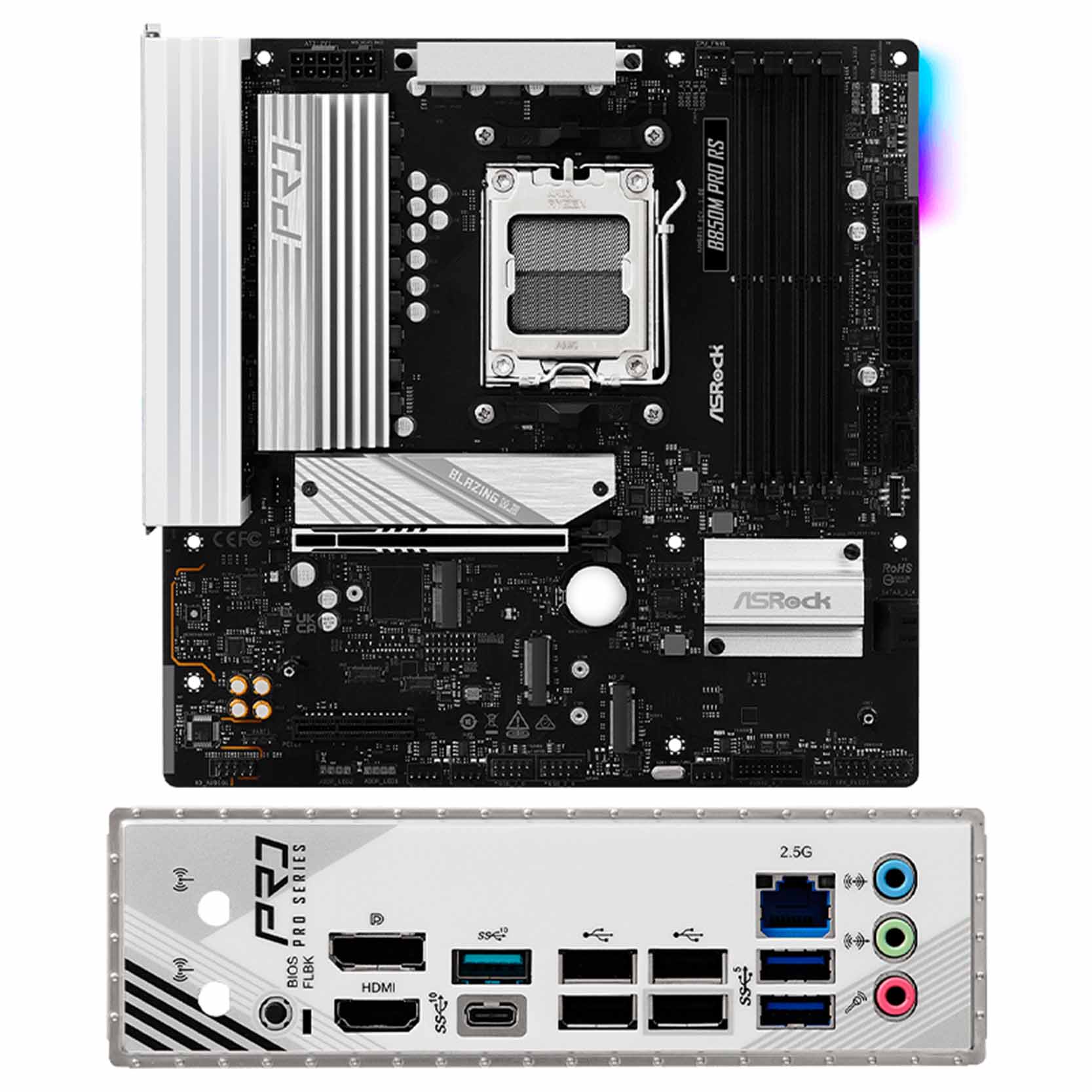 <table style="height: 1870px; width: 55.6369%;" border="1" width="380" cellspacing="1" cellpadding="1"> <tbody> <tr> <td style="width: 27.2727%;" rowspan="1"><span style="font-size: 8pt;">MARCA</span></td> <td style="width: 72.5806%;" colspan="3" height="21"><span style="font-size: 8pt;">ASROCK</span></td> </tr> <tr></tr> <tr> <td style="width: 27.2727%;" rowspan="1"><span style="font-size: 8pt;">MODELO</span></td> <td style="width: 72.5806%;" colspan="3" height="21"><span style="font-size: 8pt;">B850M Pro RS</span></td> </tr> <tr></tr> <tr> <td style="width: 27.2727%;" rowspan="1"><span style="font-size: 8pt;">CHIPSET</span></td> <td style="width: 72.5806%;" colspan="3" height="21"><span style="font-size: 8pt;">AMD B850</span></td> </tr> <tr></tr> <tr> <td style="width: 27.2727%;" rowspan="1"><span style="font-size: 8pt;">TIPO DE SOCKET</span></td> <td style="width: 72.5806%;" colspan="3" height="21"><span style="font-size: 8pt;">AM5 AMD</span></td> </tr> <tr></tr> <tr> <td style="width: 27.2727%;" rowspan="1"><span style="font-size: 8pt;">PROCESADORES</span></td> <td style="width: 28.0059%;" rowspan="1" height="21"><span style="font-size: 8pt;">AMD COMPATIBLE</span></td> <td style="width: 44.5748%;" colspan="2" height="21"><span style="font-size: 8pt;">Procesador AMD Ryzen 9 SAM5 9XXX</span><br><span style="font-size: 8pt;">Procesador AMD Ryzen 7 SAM5 9XXX</span><br><span style="font-size: 8pt;">Procesador AMD Ryzen 5 SAM5 9XXX</span><br><span style="font-size: 8pt;">Procesador AMD Ryzen 3 SAM5 9XXX</span><br><span style="font-size: 8pt;">Procesador AMD Ryzen 3 SAM5 8XXX</span><br><span style="font-size: 8pt;">Procesador AMD Ryzen 9 SAM5 8XXX</span><br><span style="font-size: 8pt;">Procesador AMD Ryzen 7 SAM5 8XXX</span><br><span style="font-size: 8pt;">Procesador AMD Ryzen 5 SAM5 8XXX</span><br><span style="font-size: 8pt;">Procesador AMD Ryzen 9 SAM5 7XXX</span><br><span style="font-size: 8pt;">Procesador AMD Ryzen 7 SAM5 7XXX</span><br><span style="font-size: 8pt;">Procesador AMD Ryzen 5 SAM5 7XXX</span></td> </tr> <tr></tr> <tr> <td style="width: 27.2727%;" rowspan="5"><span style="font-size: 8pt;">MEMORIAS RAM</span></td> <td style="width: 28.0059%;" rowspan="1" height="21"><span style="font-size: 8pt;">COMPATIBLES</span></td> <td style="width: 44.5748%;" colspan="2" height="21"><span style="font-size: 8pt;">Memoria RAM DDR5 8200 MHz PC5-65600</span><br><span style="font-size: 8pt;">Memoria RAM DDR5 7600 MHz PC5-60800</span><br><span style="font-size: 8pt;">Memoria RAM DDR5 7200 MHz PC5-57600</span><br><span style="font-size: 8pt;">Memoria RAM DDR5 6800 MHz PC5-54400</span><br><span style="font-size: 8pt;">Memoria RAM DDR5 6400 MHz PC5-51200</span><br><span style="font-size: 8pt;">Memoria RAM DDR5 6000 MHz PC5-48000</span><br><span style="font-size: 8pt;">Memoria RAM DDR5 5600 MHz PC5-44800</span><br><span style="font-size: 8pt;">Memoria RAM DDR5 5200 MHz PC5-41600</span><br><span style="font-size: 8pt;">Memoria RAM DDR5 4800 MHz PC5-38400</span></td> </tr> <tr> <td style="width: 28.0059%;" rowspan="1" height="21"><span style="font-size: 8pt;">NUMERO DE SOCKETS DIMM</span></td> <td style="width: 44.5748%;" colspan="2" height="21"><span style="font-size: 8pt;">4</span></td> </tr> <tr> <td style="width: 28.0059%;" rowspan="1" height="21"><span style="font-size: 8pt;">EXPANSION MAXIMA EN GB</span></td> <td style="width: 44.5748%;" colspan="2" height="21"><span style="font-size: 8pt;">196</span></td> </tr> <tr> <td style="width: 28.0059%;" rowspan="1" height="21"><span style="font-size: 8pt;">TECNOLOGIA</span></td> <td style="width: 44.5748%;" colspan="2" height="21"><span style="font-size: 8pt;">AMD EXPO</span><br><span style="font-size: 8pt;">Intel XMP</span><br><span style="font-size: 8pt;">Dual Channel</span></td> </tr> <tr> <td style="width: 28.0059%;" rowspan="1" height="21"><span style="font-size: 8pt;">TIPO DE RAM</span></td> <td style="width: 44.5748%;" colspan="2" height="21"><span style="font-size: 8pt;">DDR5</span></td> </tr> <tr></tr> <tr> <td style="width: 27.2727%;" rowspan="1"><span style="font-size: 8pt;">VIDEO</span></td> <td style="width: 72.5806%;" colspan="3" height="21"><span style="font-size: 8pt;">Revisar caracteristicas del Procesador</span></td> </tr> <tr></tr> <tr> <td style="width: 27.2727%;" rowspan="3"><span style="font-size: 8pt;">SONIDO</span></td> <td style="width: 28.0059%;" rowspan="1" height="21"><span style="font-size: 8pt;">TECNOLOGIA</span></td> <td style="width: 44.5748%;" colspan="2" height="21"><span style="font-size: 8pt;">High Definition Audio</span></td> </tr> <tr> <td style="width: 28.0059%;" rowspan="1" height="21"><span style="font-size: 8pt;">CHIPSET</span></td> <td style="width: 44.5748%;" colspan="2" height="21"><span style="font-size: 8pt;">Realtek ALC897 Codec</span></td> </tr> <tr> <td style="width: 28.0059%;" rowspan="1" height="21"><span style="font-size: 8pt;">CANALES</span></td> <td style="width: 44.5748%;" colspan="2" height="21"><span style="font-size: 8pt;">7.1</span></td> </tr> <tr></tr> <tr> <td style="width: 27.2727%;" rowspan="2"><span style="font-size: 8pt;">CONECTIVIDAD</span></td> <td style="width: 28.0059%;" rowspan="2" height="21"><span style="font-size: 8pt;">ETHERNET</span></td> <td style="width: 30.2053%;" rowspan="1" height="21"><span style="font-size: 8pt;">CHIPSET</span></td> <td style="width: 14.3695%;" colspan="1" height="21"><span style="font-size: 8pt;">Realtek RTL8125BG</span></td> </tr> <tr> <td style="width: 30.2053%;" rowspan="1" height="21"><span style="font-size: 8pt;">VELOCIDAD</span></td> <td style="width: 14.3695%;" colspan="1" height="21"><span style="font-size: 8pt;">10 Mbps</span><br><span style="font-size: 8pt;">100 Mbps</span><br><span style="font-size: 8pt;">1000 Mbps</span><br><span style="font-size: 8pt;">2500 Mbps</span></td> </tr> <tr></tr> <tr> <td style="width: 27.2727%;" rowspan="3"><span style="font-size: 8pt;">ALMACENAMIENTO SERIAL ATA</span></td> <td style="width: 28.0059%;" rowspa